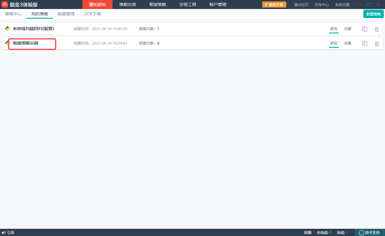 1、打开“量化研究”板块的“策略中心”;