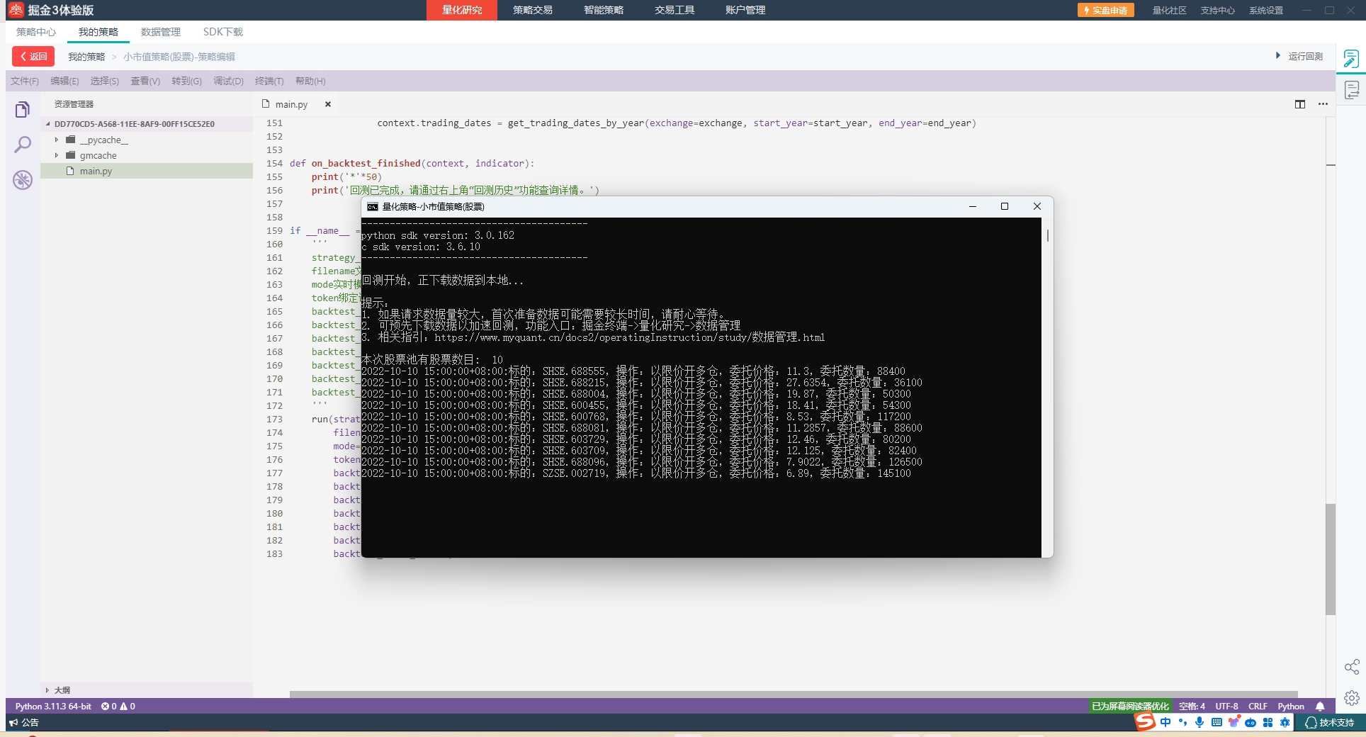 目前,终端内置的 IDE 仅支持 Python 语言,其他语言必须在第三方 IDE 上编辑,如 Pycharm、Spyder和MATLAB。下面为大家演示如何在内置 IDE 中编辑策略并进行回测。